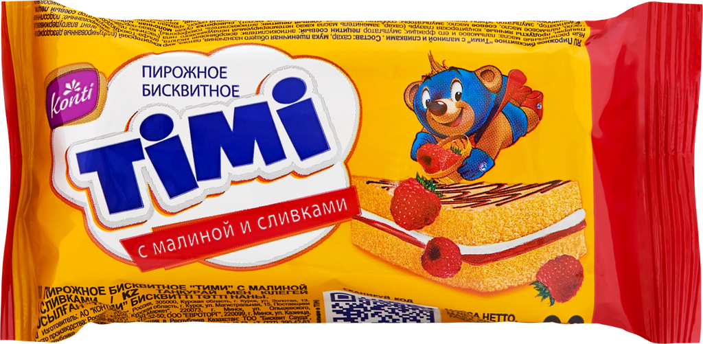 Пирожное 10 шт по 33 г Timi с малиной и сливками интересное: