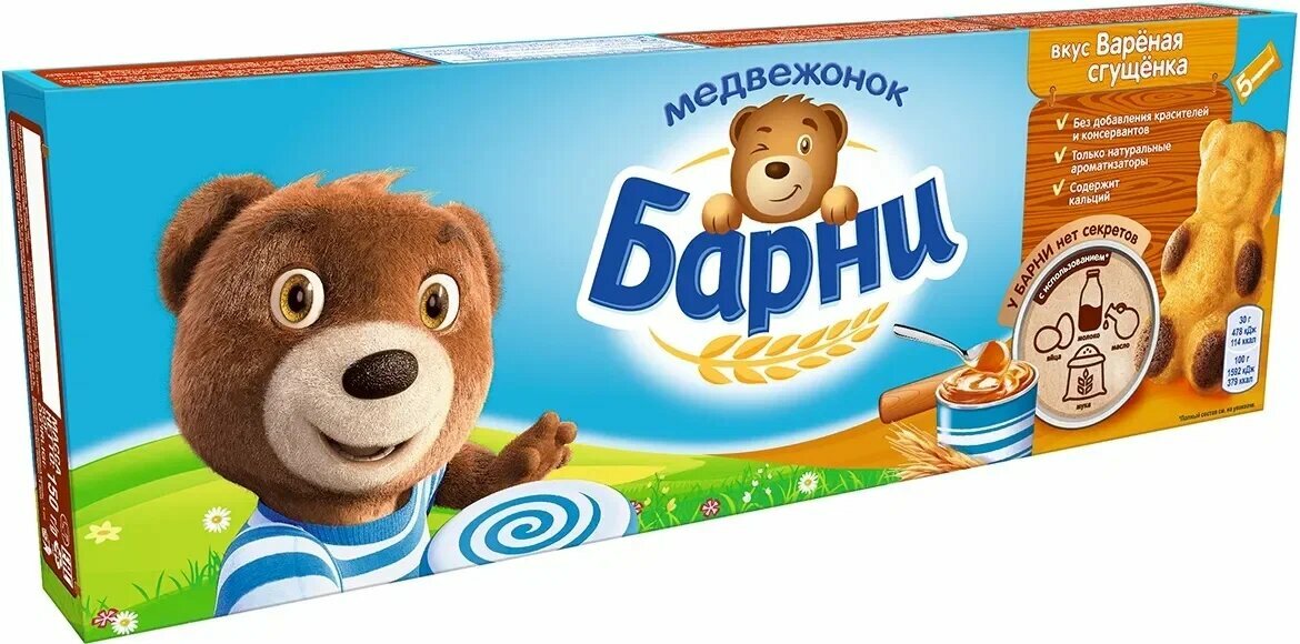 "Барни" - бисквит с начинкой "вареная сгущенка", 6 упаковок по 150 гр. интересное: