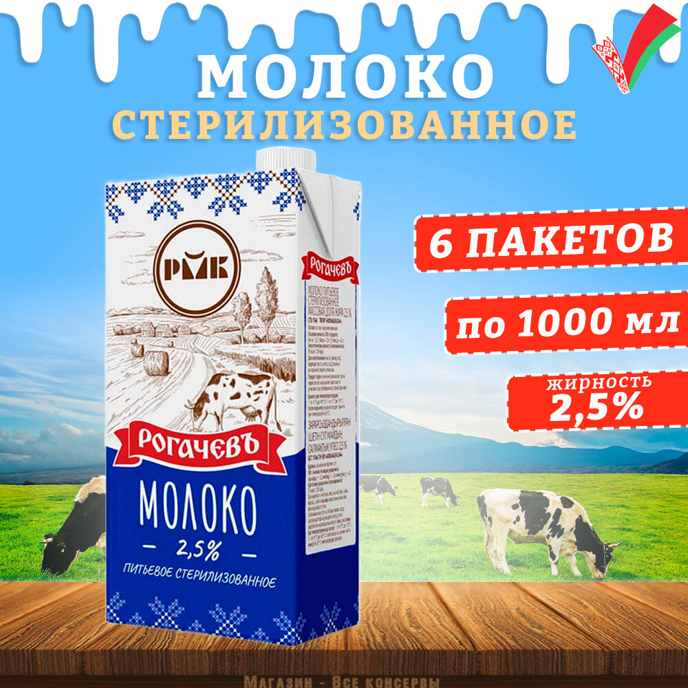 Молоко питьевое стерилизованное, 2,5%, Рогачев, 6 шт. по 1 л интересное: