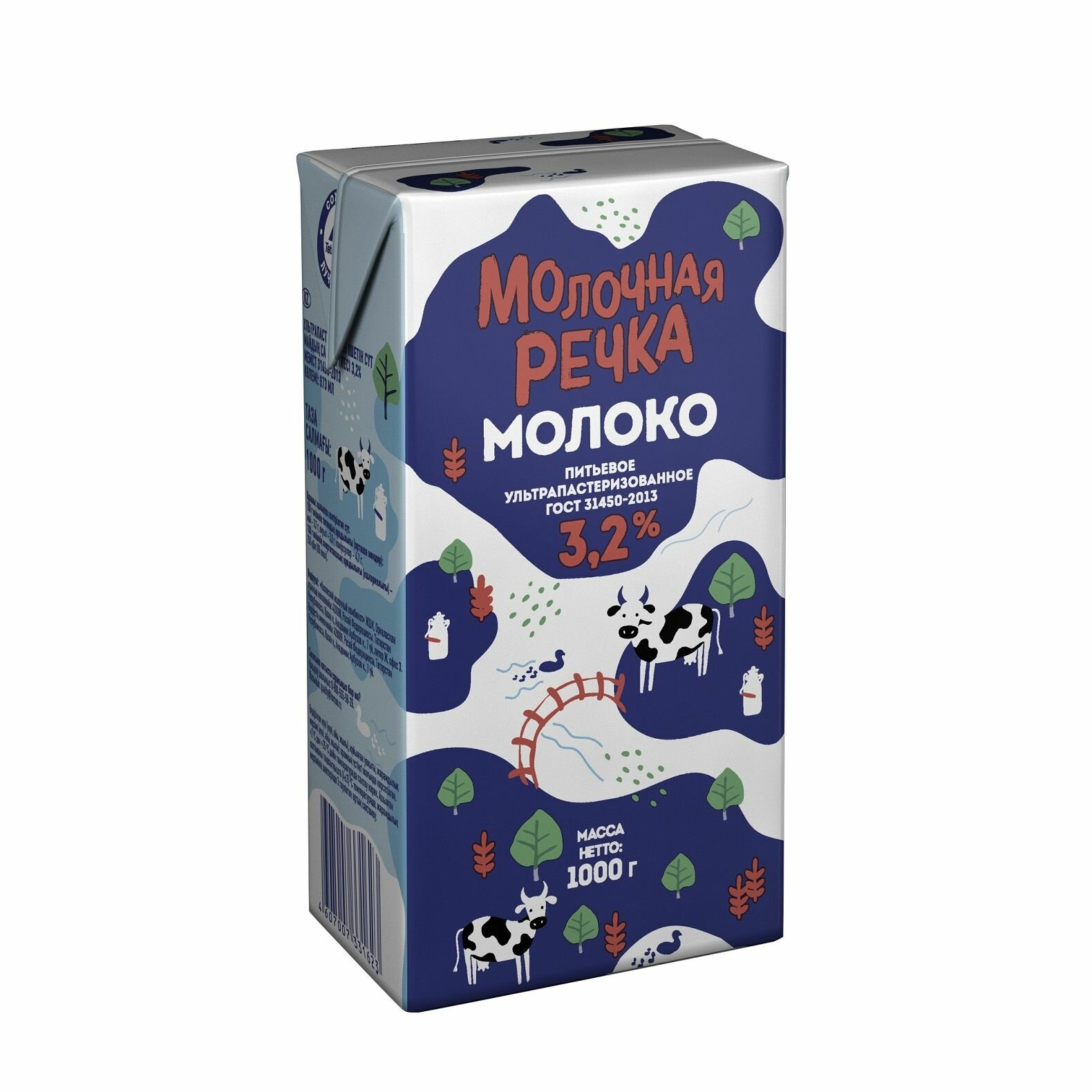 Купить Молоко У/паст 3,2% TBA 1кг (0,973л) МолочнаяРечка