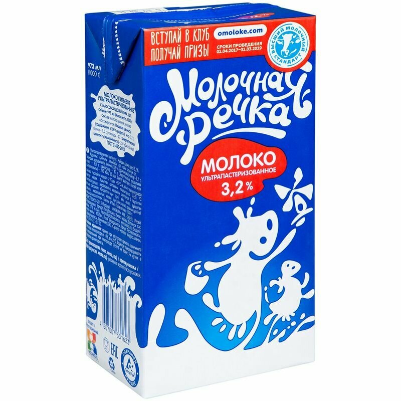 Молоко У/паст 3,2% TBA 1кг (0,973л) МолочнаяРечка интересное: