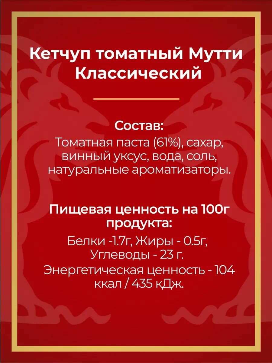 Кетчуп томатный MUTTI Classico, 2 шт по 300 г стеклянная бутылка