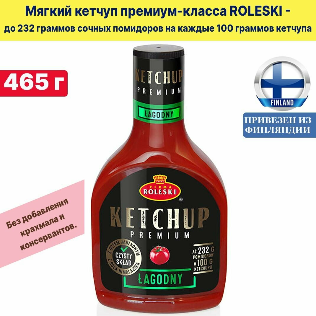 Купить Мягкий кетчуп премиум-класса ROLESKI Lagodny 465 г, до 232 граммов сочных помидоров на каждые 100 граммов кетчупа, из Финляндии