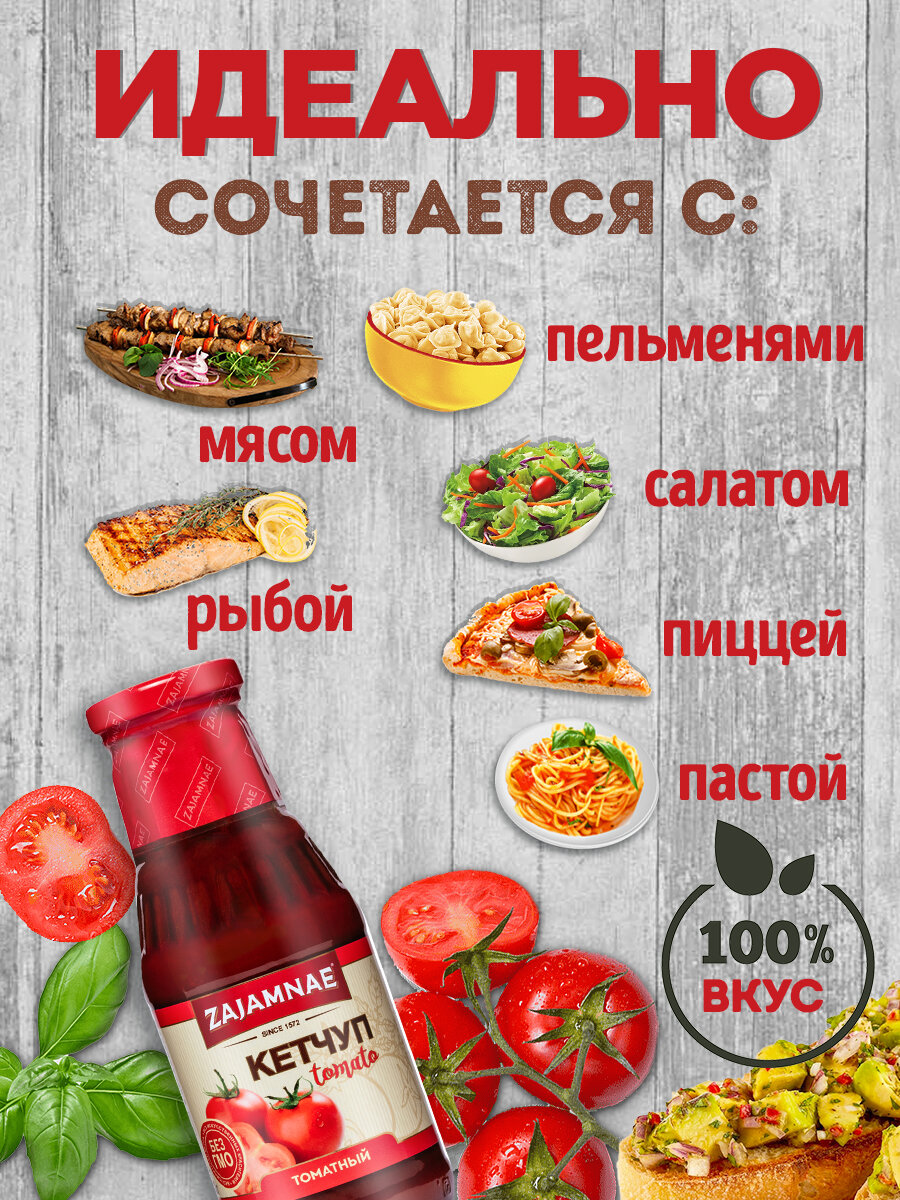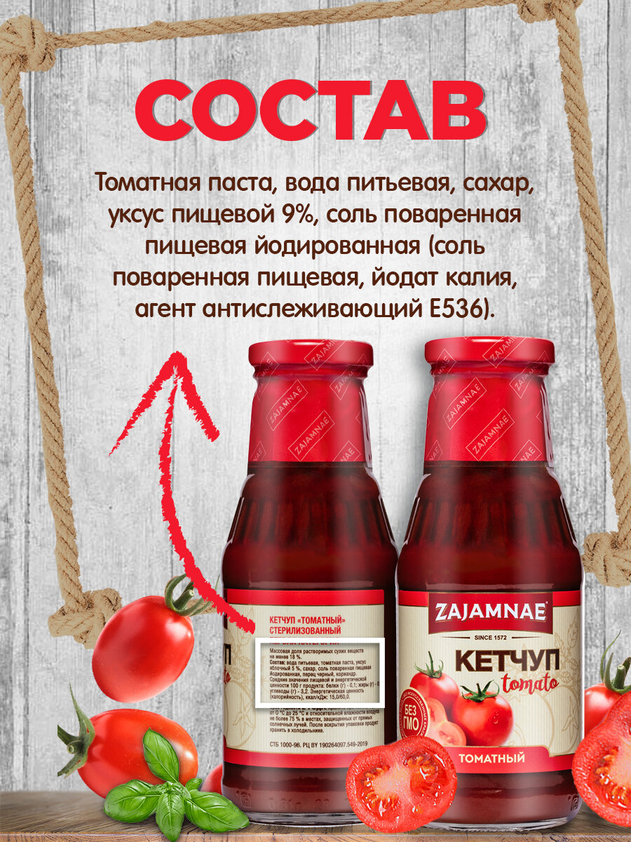 Кетчуп томатный стерилизованный 310 гр. Zajamnae интересное: