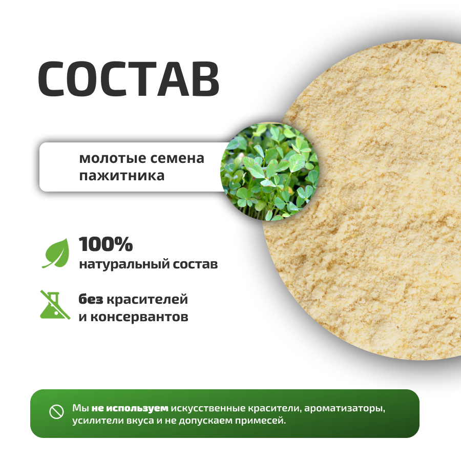 | Состав | Молотые семена пажитника |