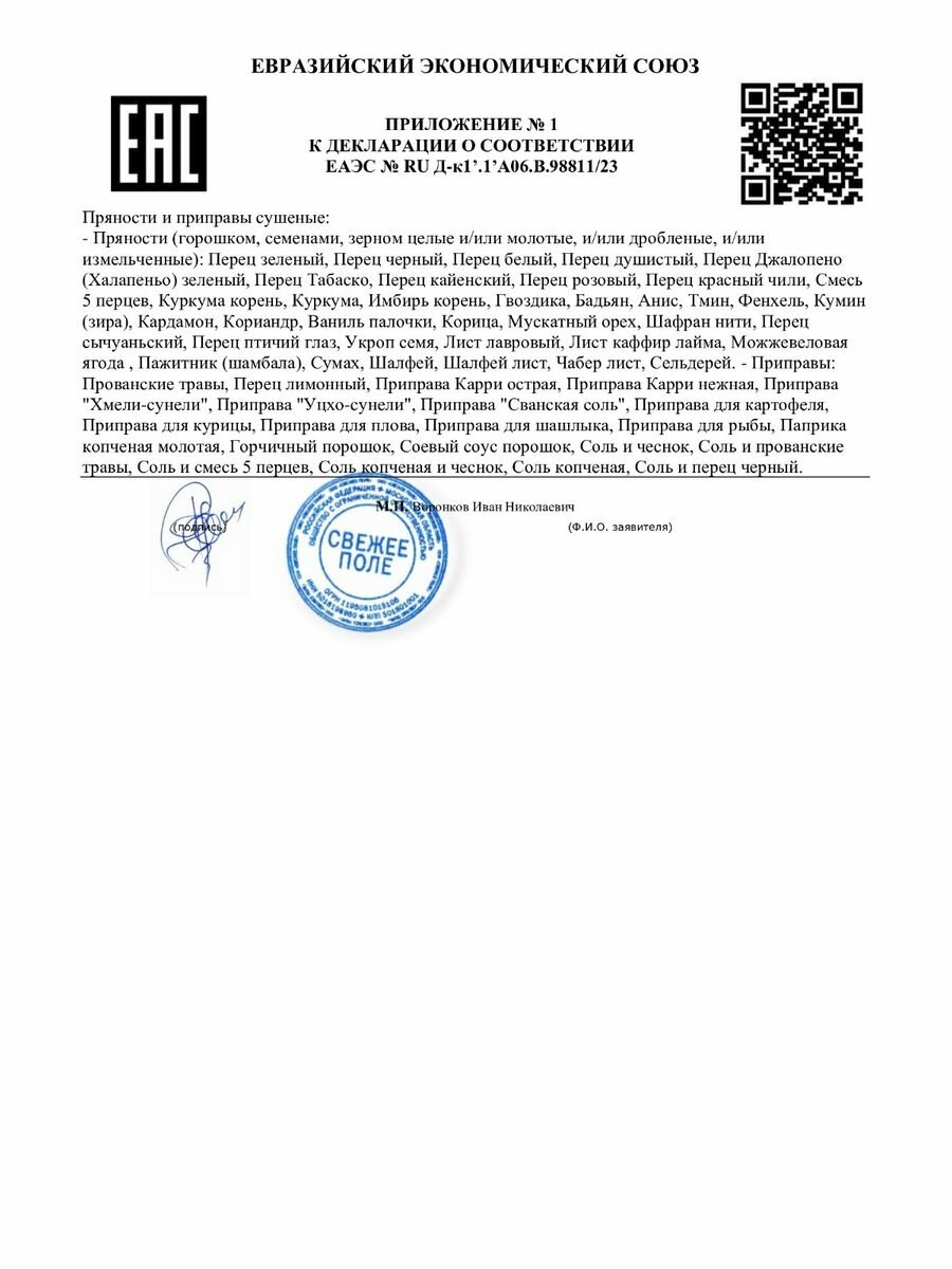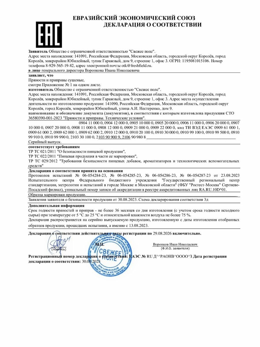 | Вид специи / пряности | кориандр / куркума / майоран / розмарин / укроп |