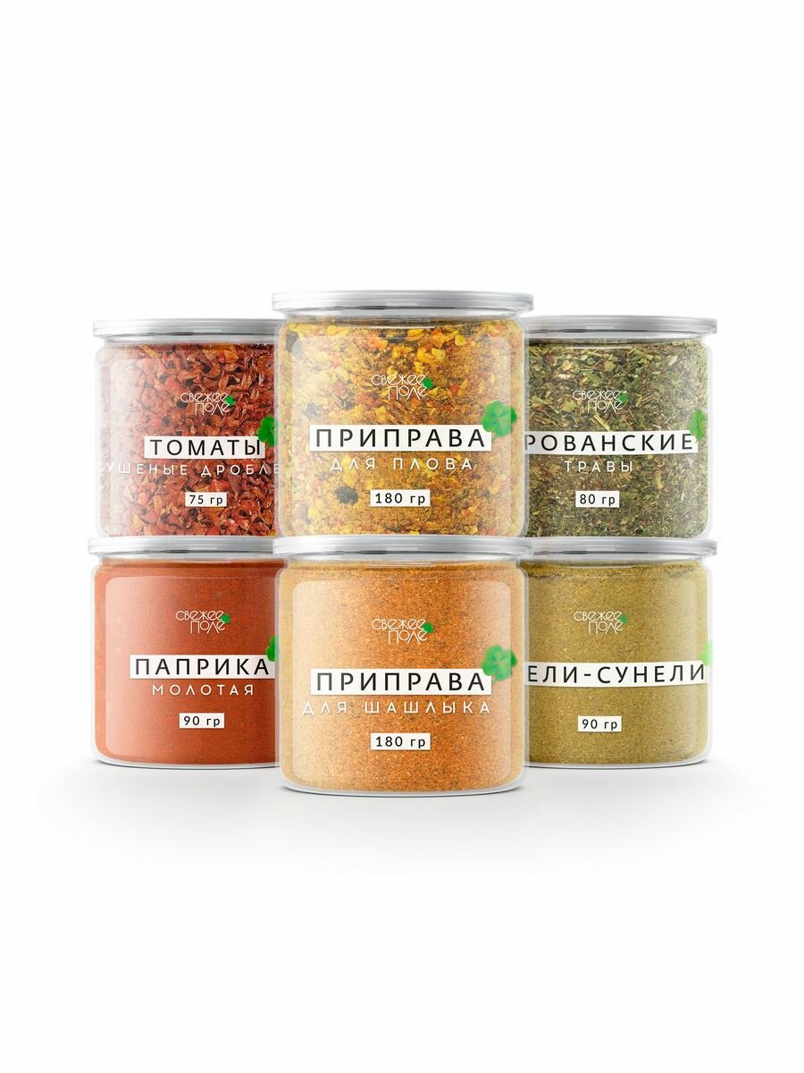 Набор специй 6 банок - специи, приправы и пряности Свежее Поле интересное: