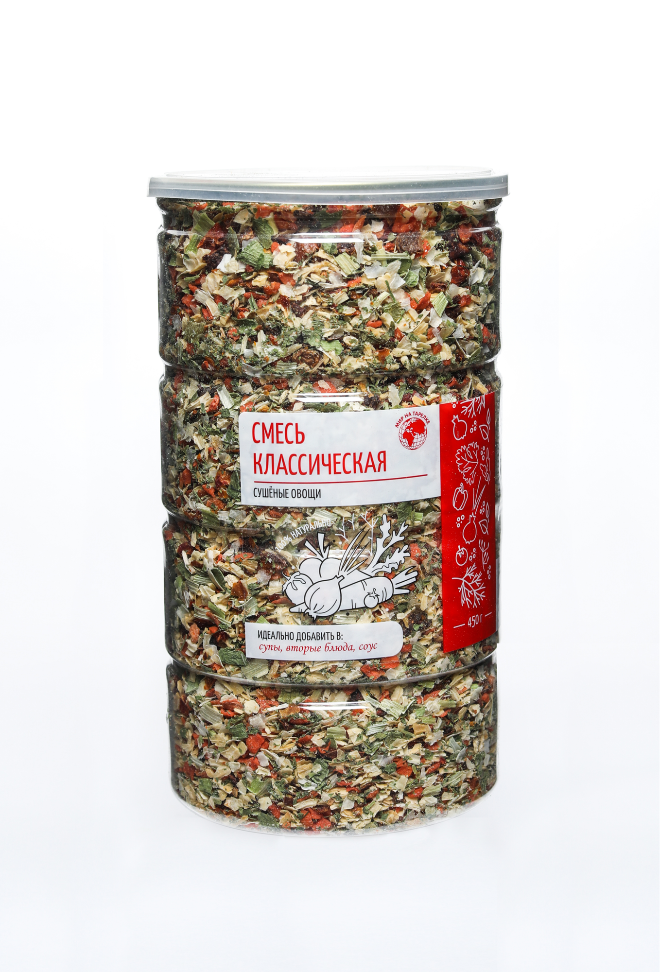 Купить Смесь сушеных овощей, Мир на тарелке, овощная смесь Классическая (Морковь, лук репчатый, томат, лук порей, петрушка, укроп), 450г