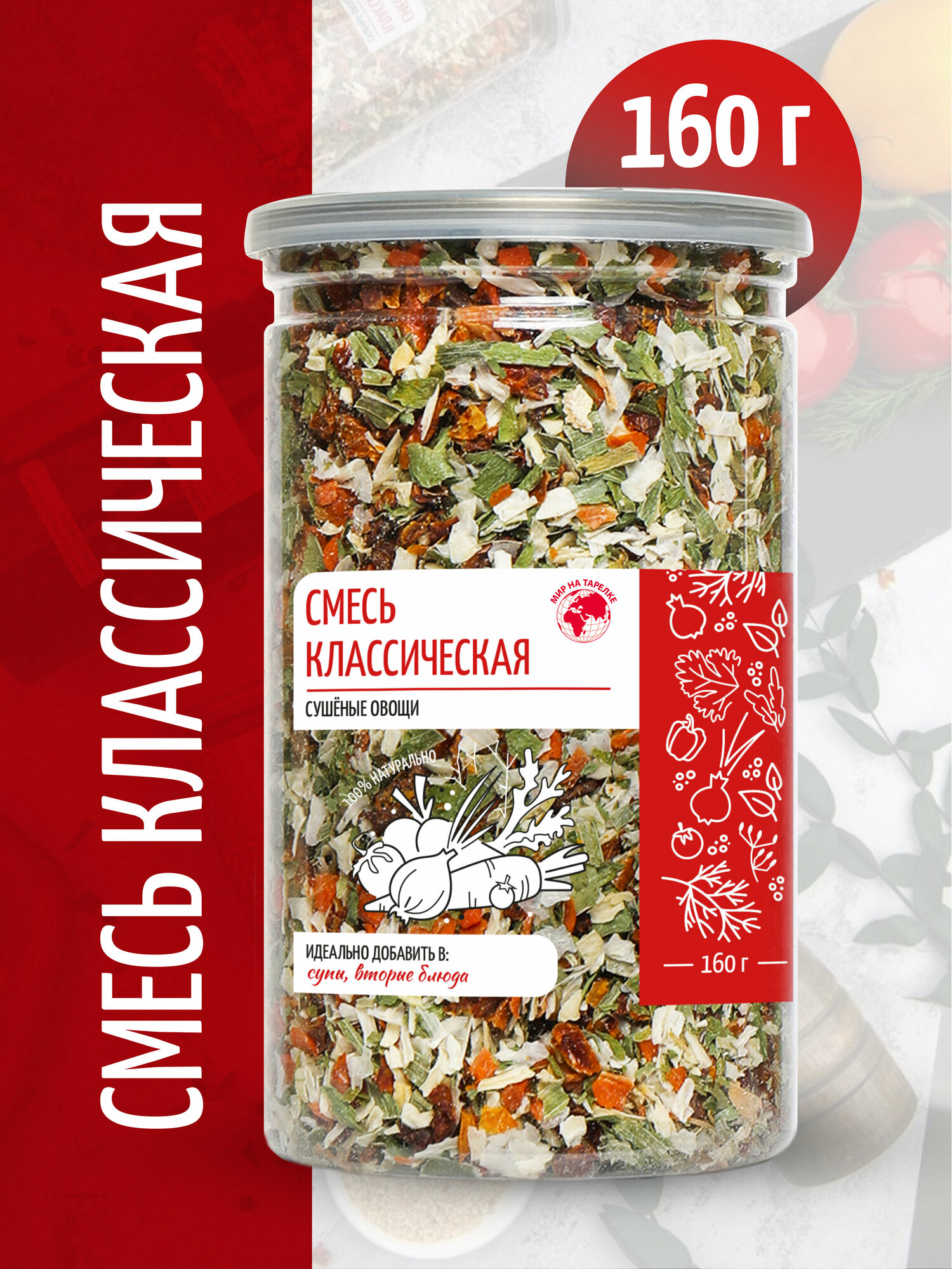 Смесь сушеных овощей, Мир на тарелке, овощная смесь Классическая (Морковь, лук репчатый, томат, лук порей, петрушка, укроп), 160г интересное: