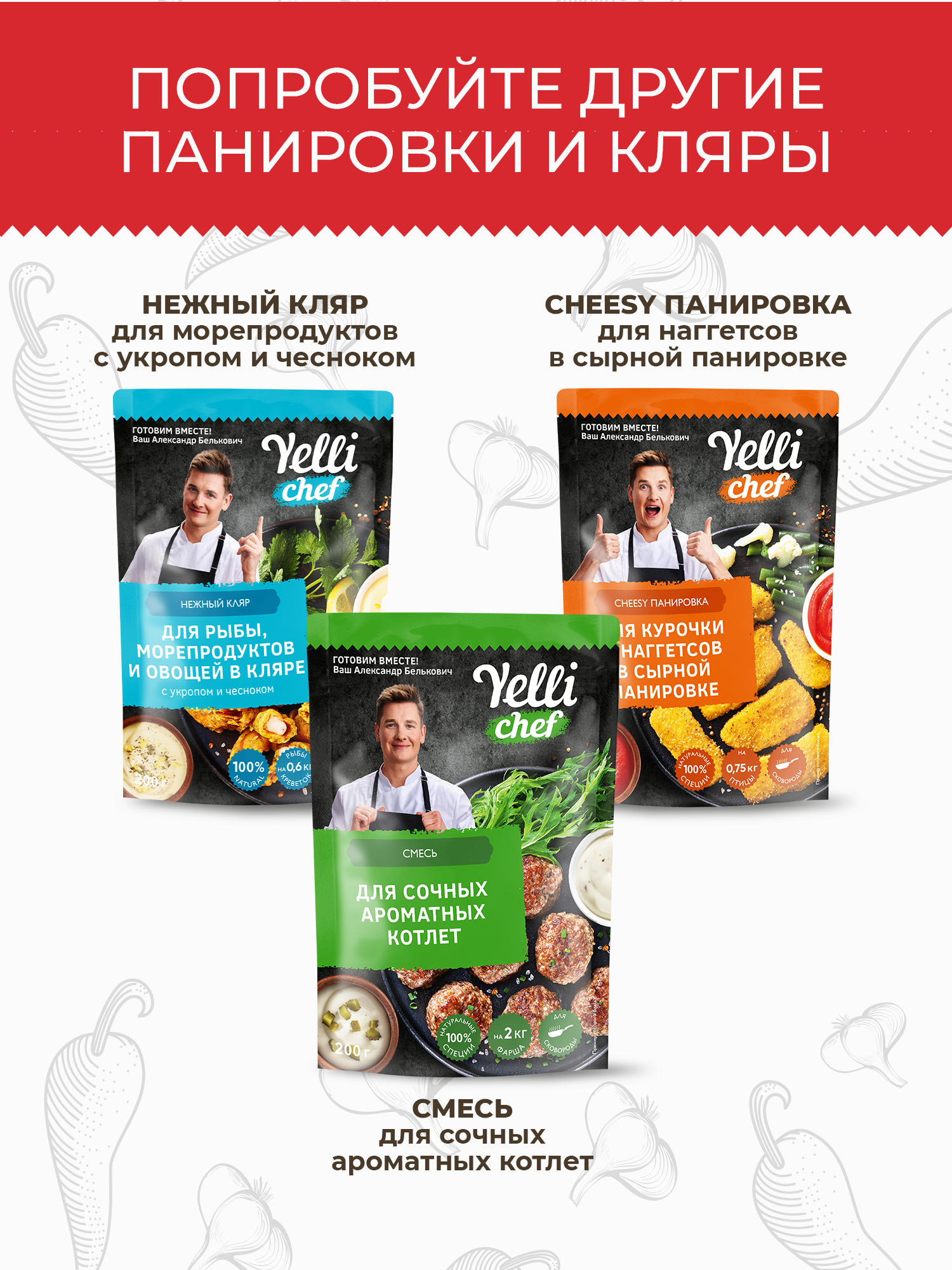 Ниже Вы можете прочитать отзывы на Панировка YELLI CHEF CRISPY Для острой курочки в хрустящей панировке с паприкой и чили 200г, ознакомится с подробными характеристиками, посмотреть интересные обзоры и фотографии на Панировка YELLI CHEF CRISPY Для острой курочки в хрустящей панировке с паприкой и чили 200г.