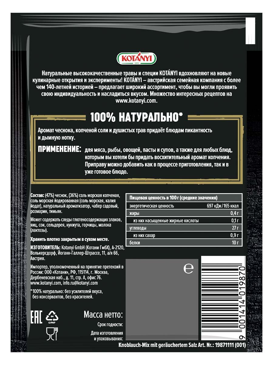 Приправа Чеснок с копченой солью KOTANYI интересное: