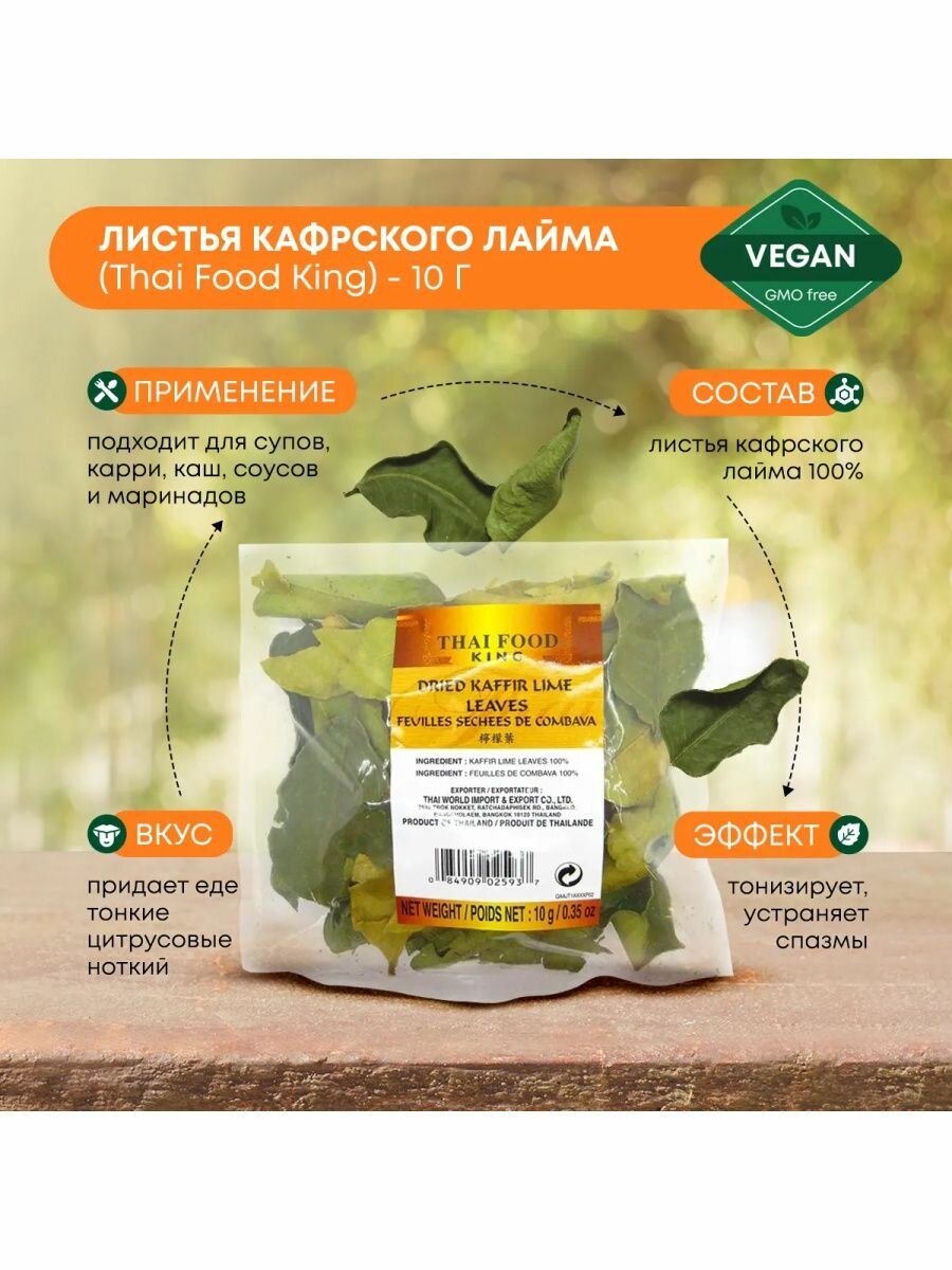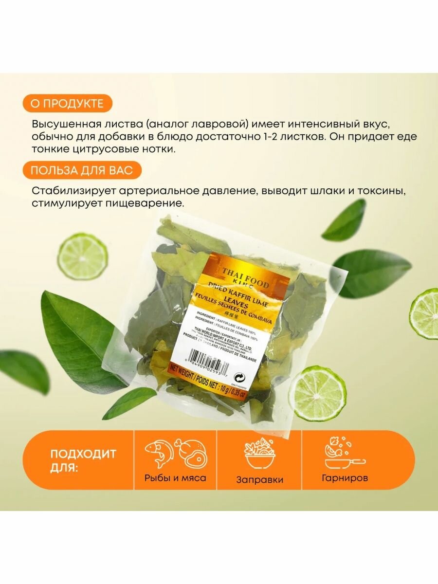 Thai Food King Пряность Листья кафрского лайма, 10 г, пакет интересное: