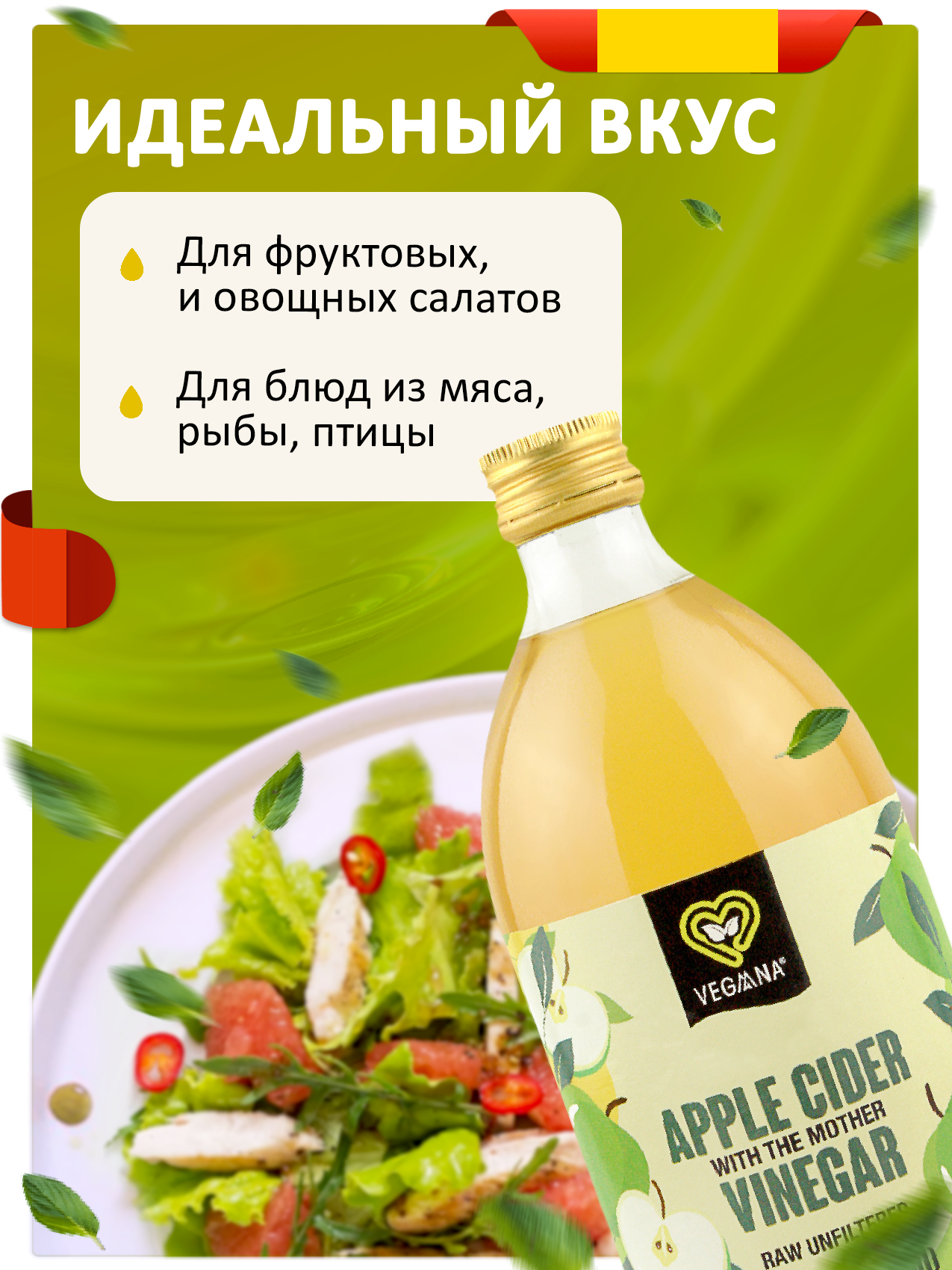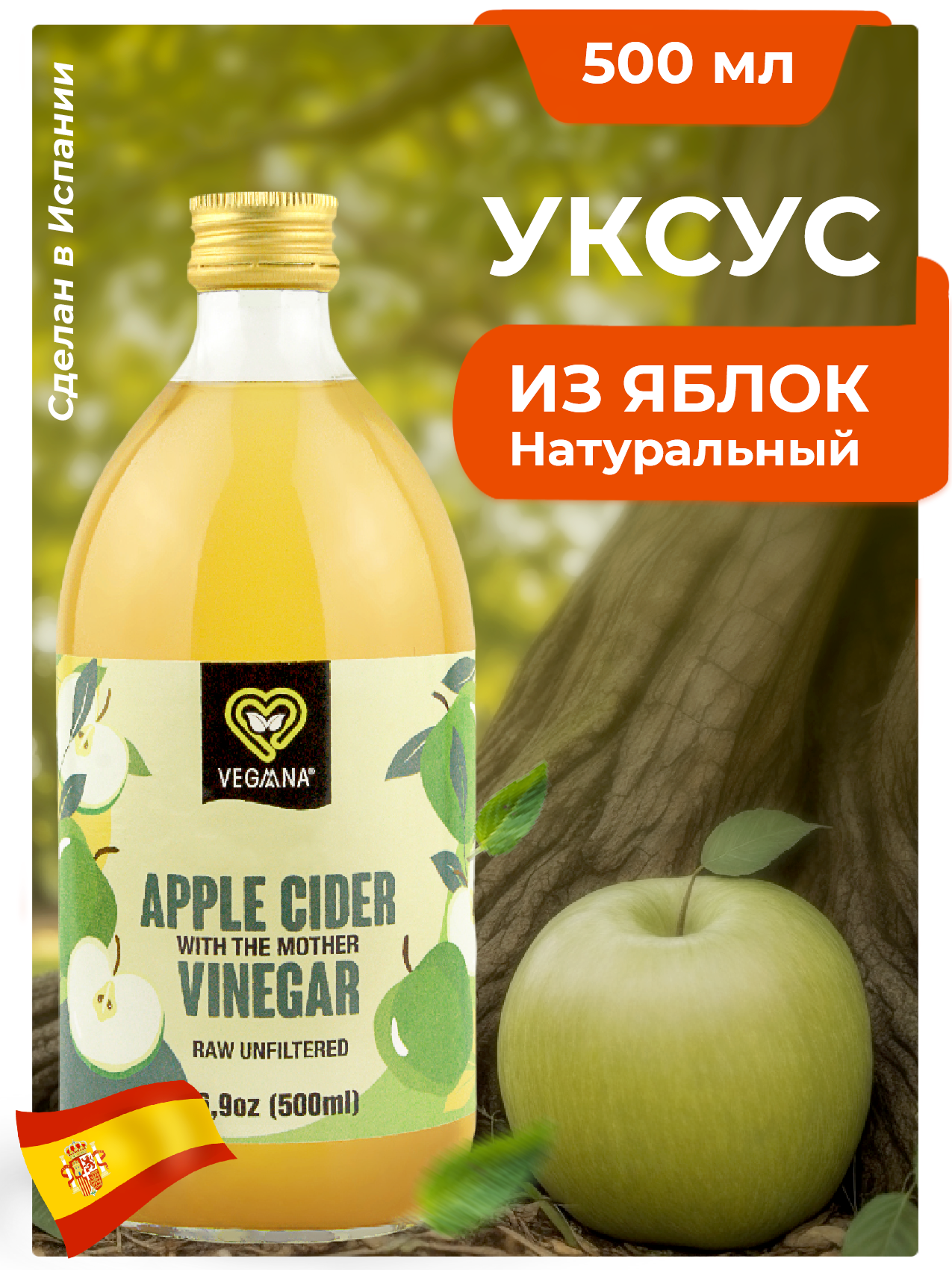 Уксус яблочный натуральный нефильтрованный с уксусной маткой "VEGAANA" 500 мл, cт/б (Испания) интересное: