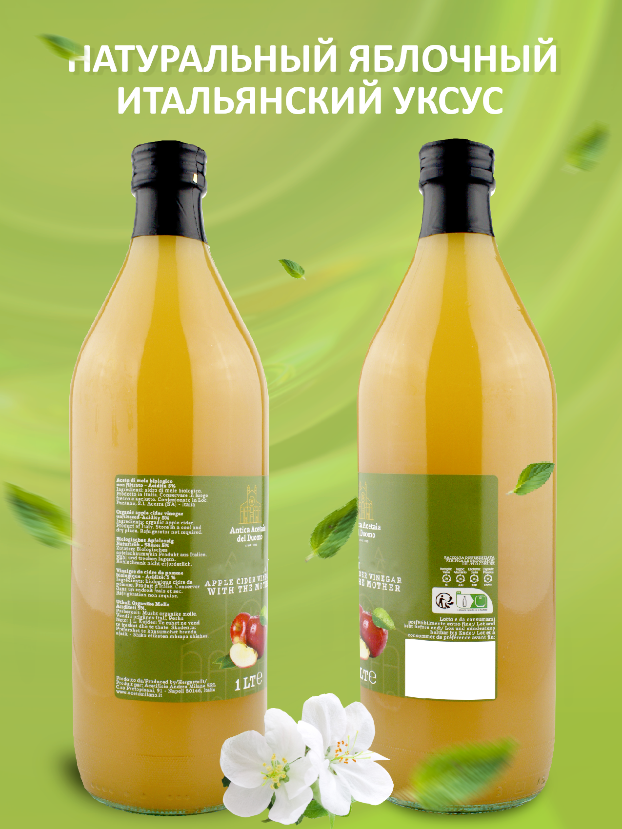 Уксус яблочный натуральный нефильтрованный "ANTICA ACETAIA DEL DUO" 1000 мл ст/б (Италия) интересное: