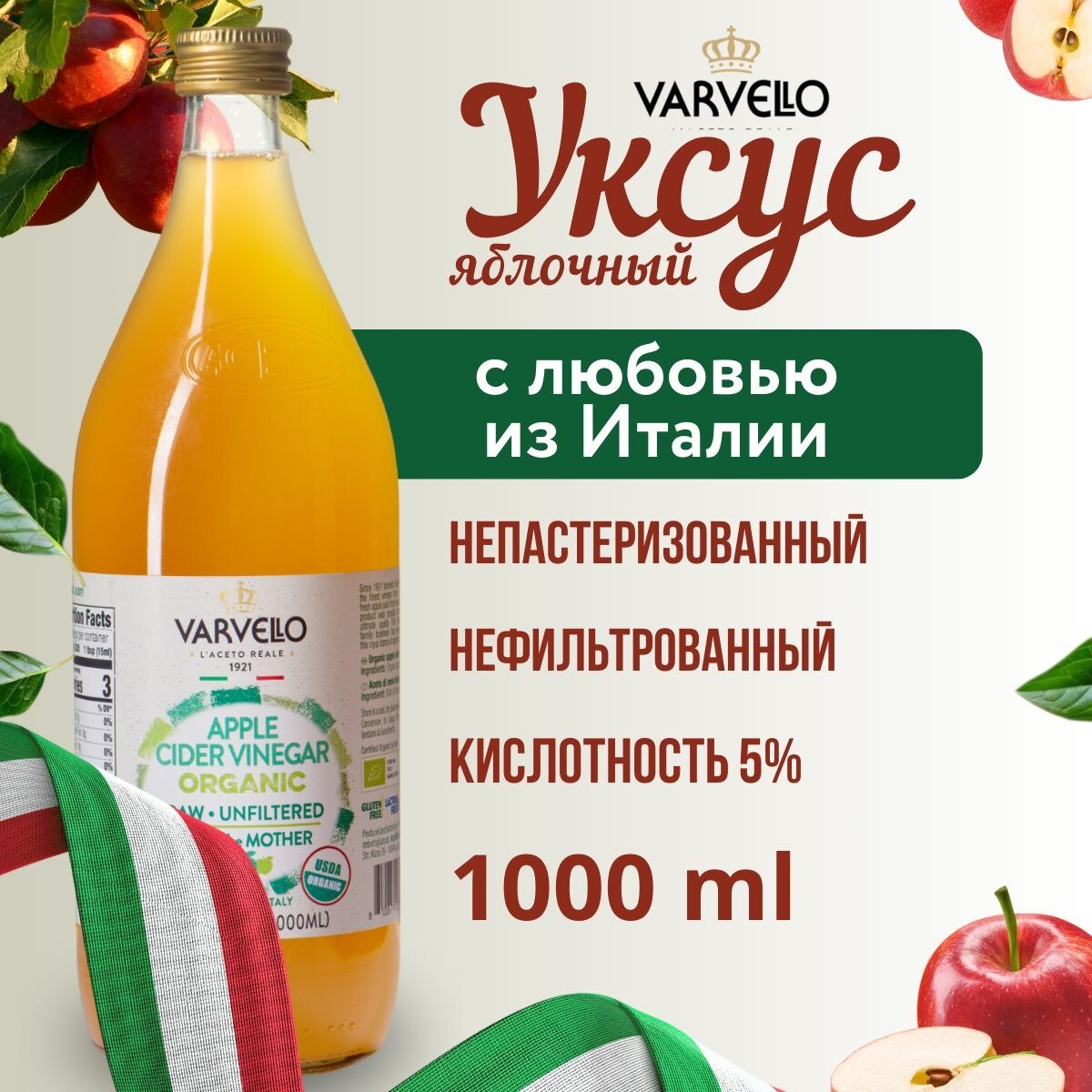 Varvello яблочный уксус натуральный нефильтрованный Непастеризованный 1 литр Стекло интересное: