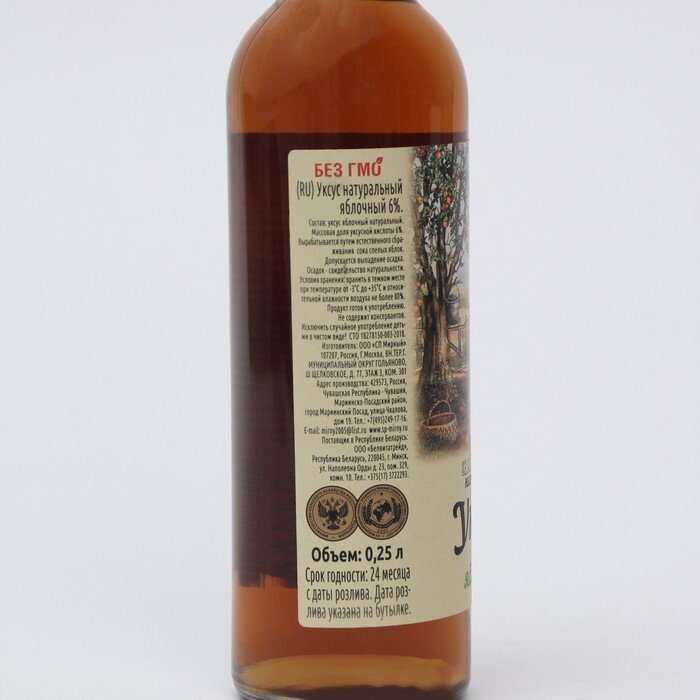 Уксус яблочный натуральный, 6%, 250 мл интересное: