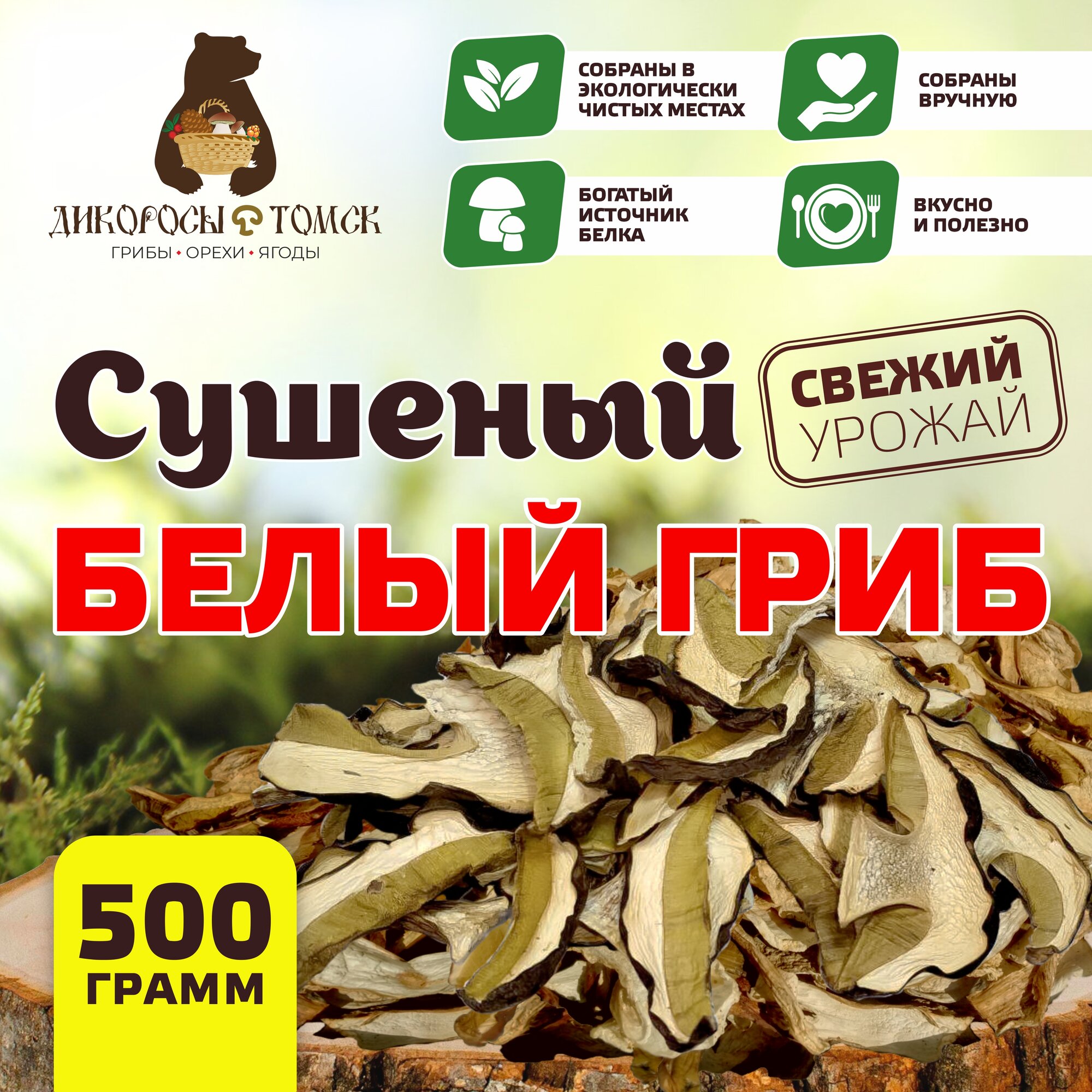 Грибы из Сибири Белые сушеные для приготовления первых и вторых блюд, "Дикоросы Томские" 500гр. интересное:
