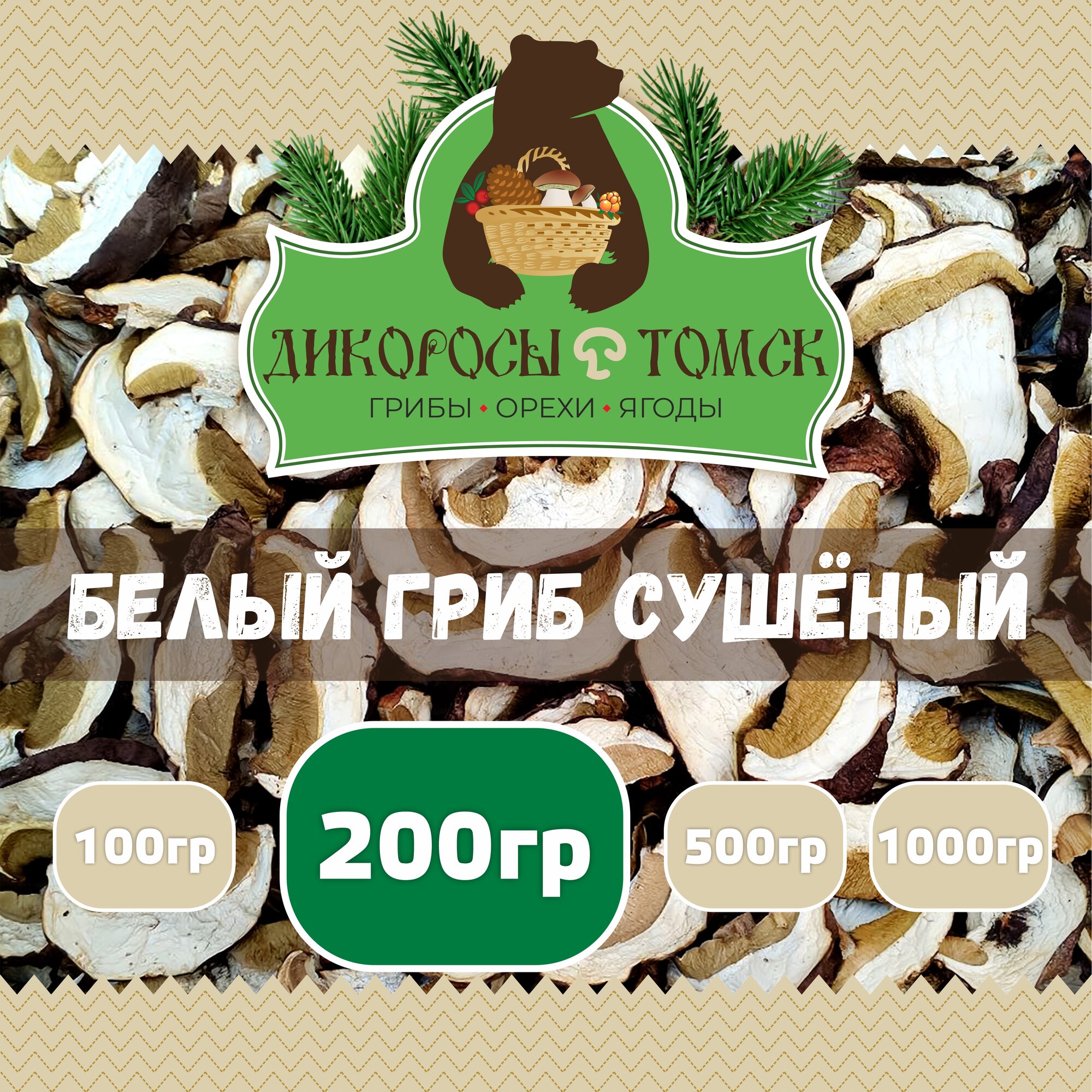 Грибы из Сибири Белые сушеные для приготовления первых и вторых блюд, "Дикоросы Томские" 1000 гр.