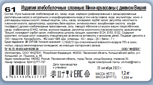 Мини-круассаны с джемом Вишня 1,2 кг интересное: