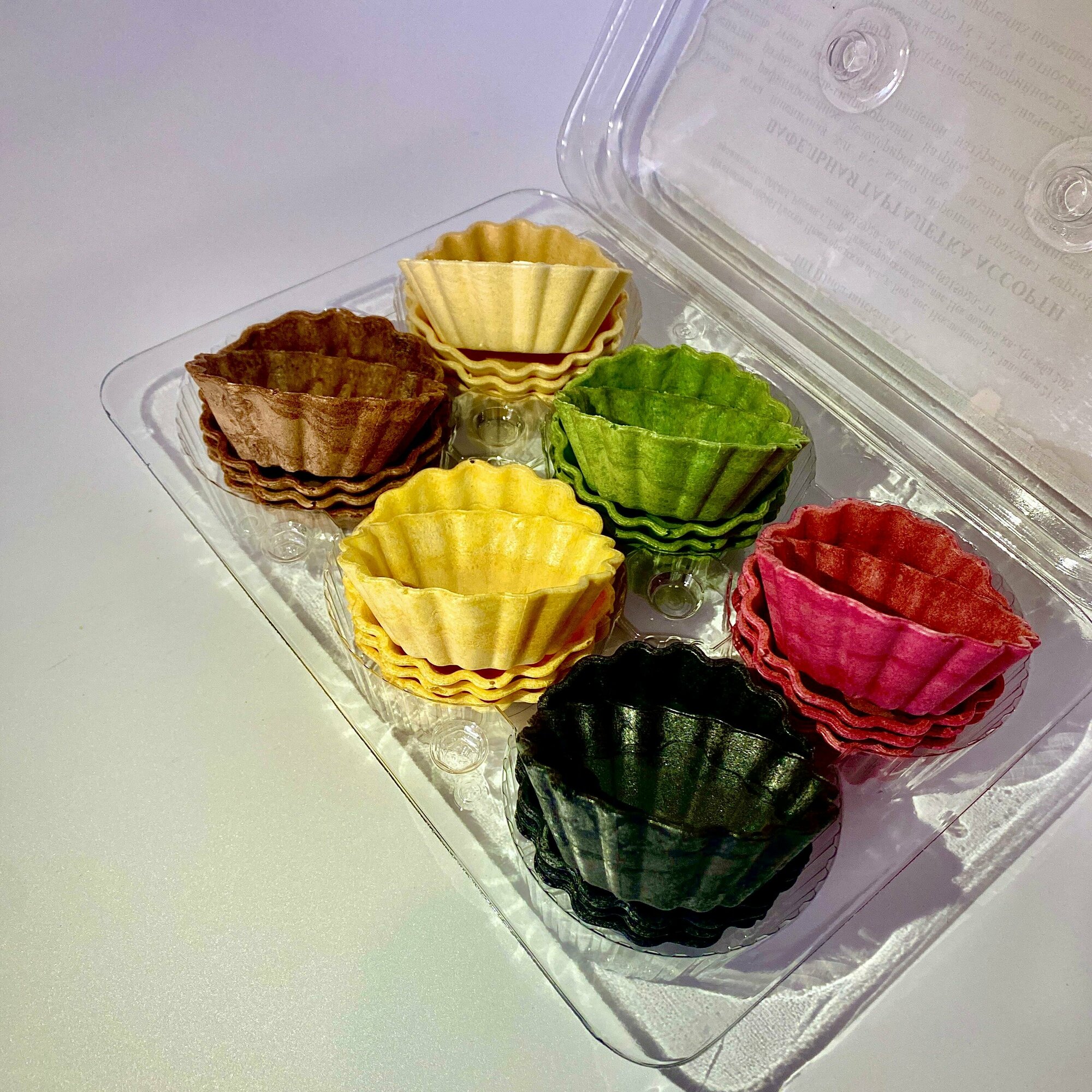 Купить Цветные вафельные тарталетки для закусок, для икры и десертов, 24 шт. Тарталетки без сахара постные
