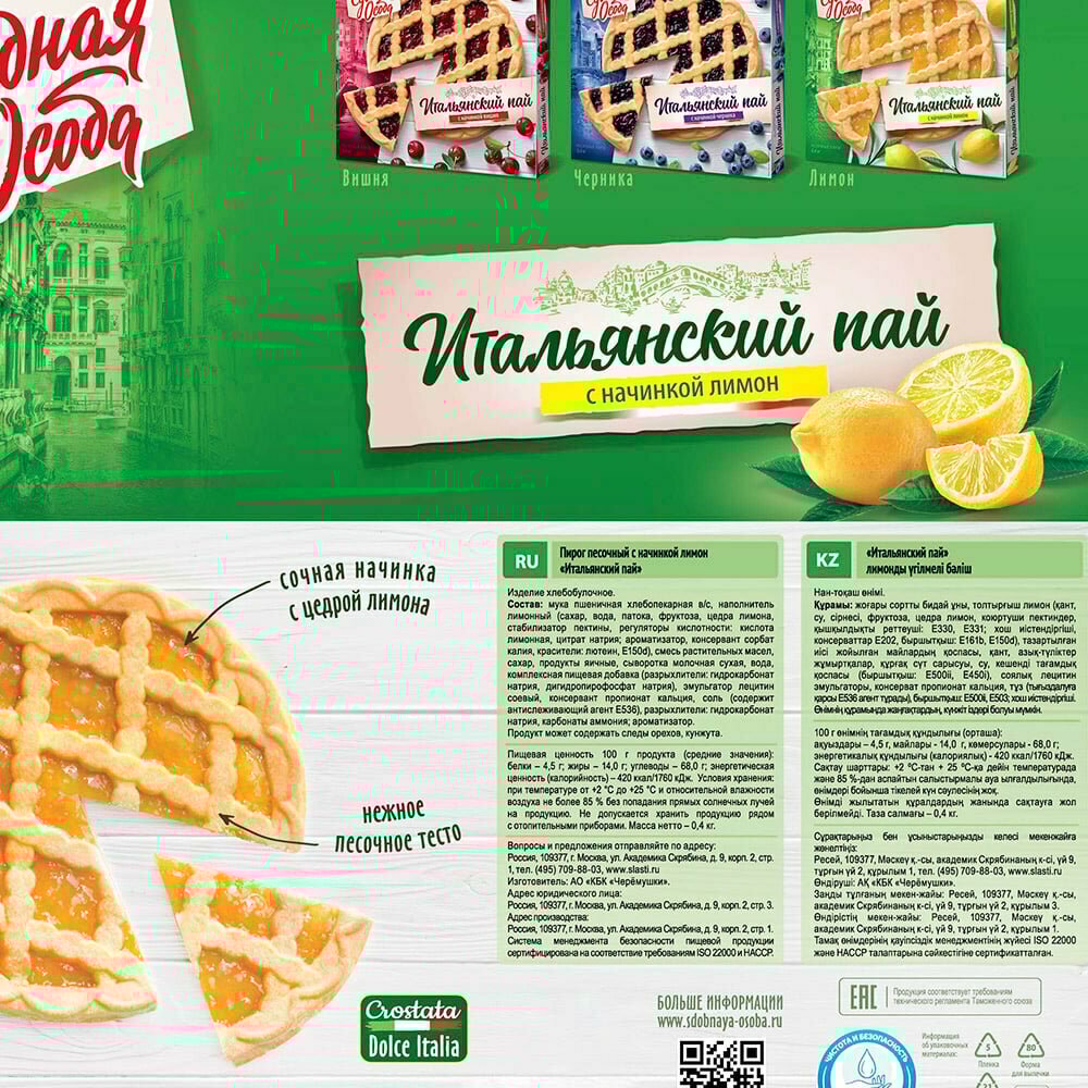 Ниже Вы можете прочитать отзывы на Пирог песочный с лимоном "Итальянский Пай" 400г, ознакомится с подробными характеристиками, посмотреть интересные обзоры и фотографии на Пирог песочный с лимоном "Итальянский Пай" 400г.