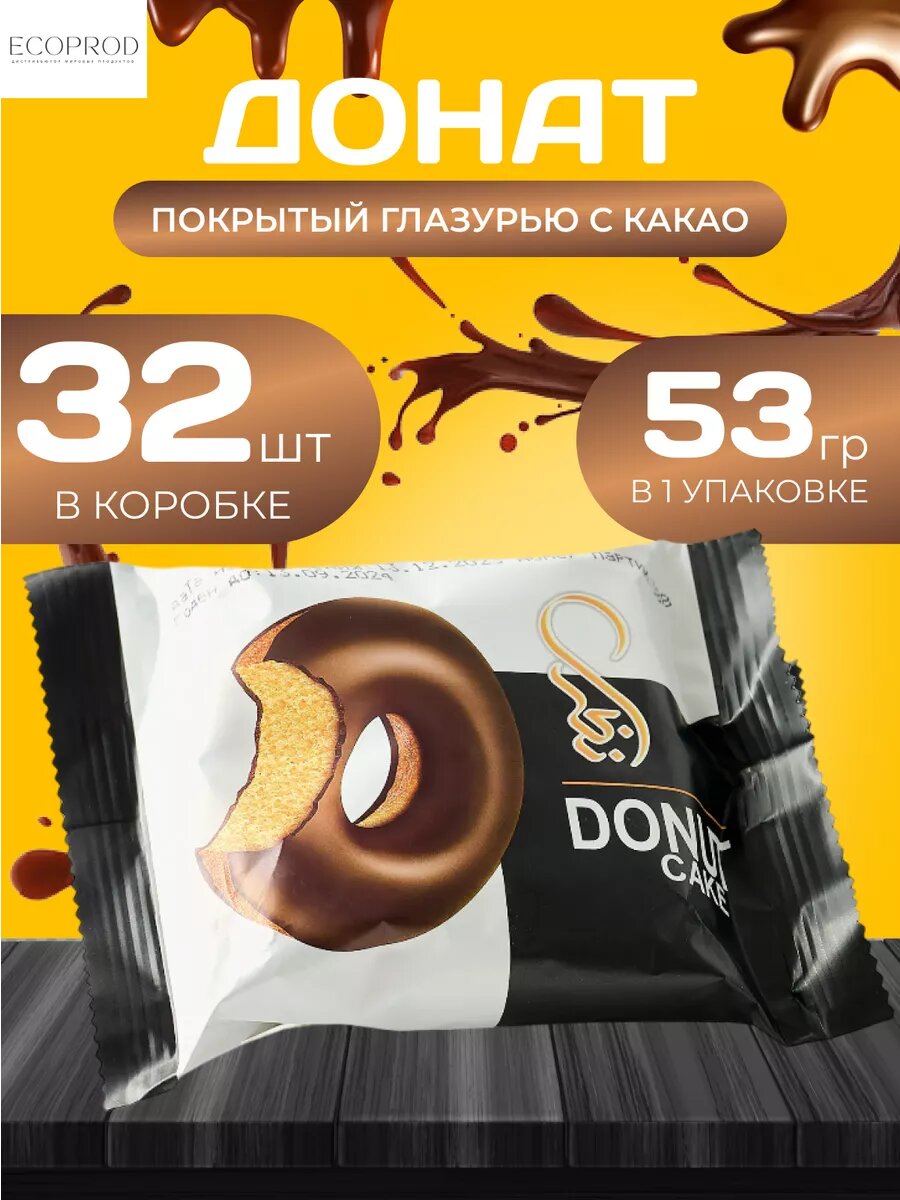 Донат покрытый глазурью с "Какао" 32 шт. х 53 гр. Пончик "Какао" интересное: