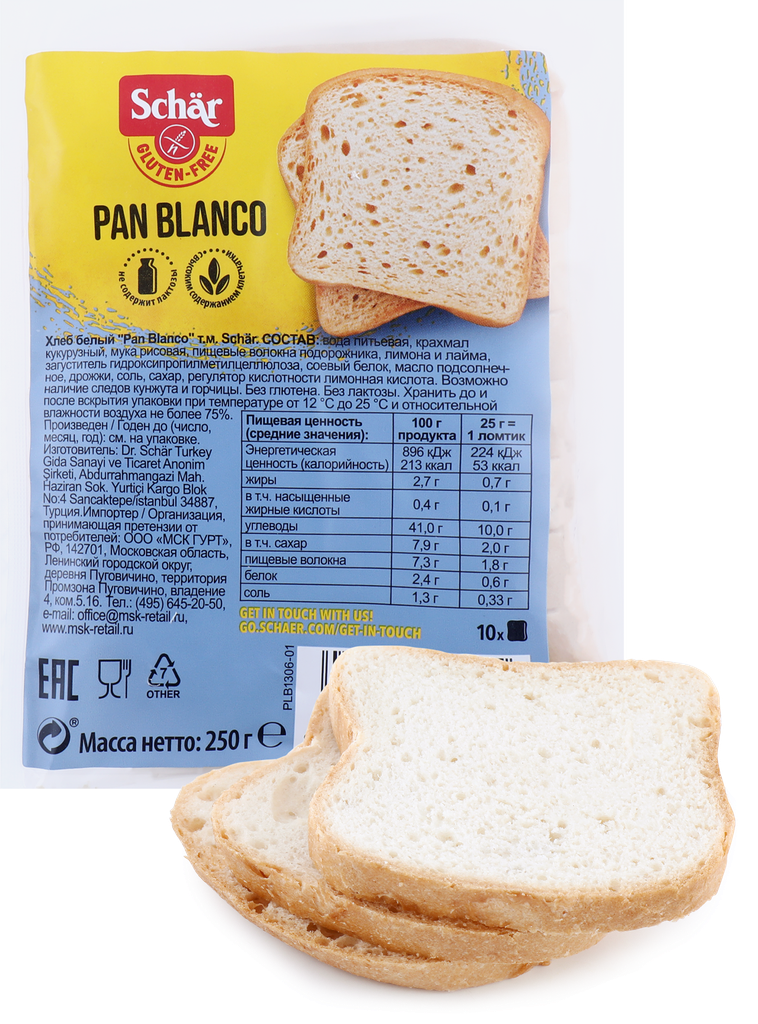 Хлеб безглютеновый DR.SСHAER Pan Blanco белый, 250г интересное: