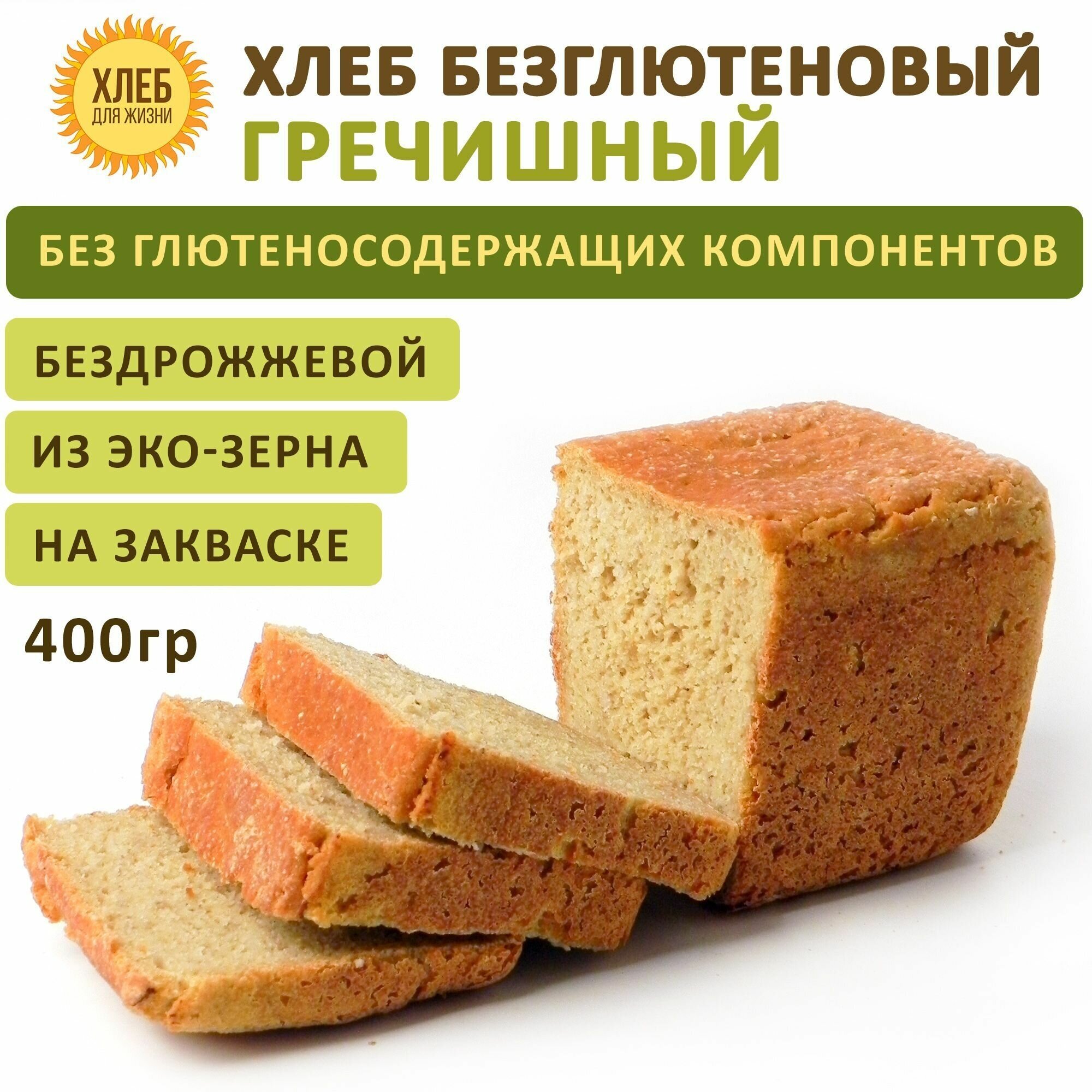 (400гр ) Хлеб Гречишный безглютеновый, цельнозерновой, бездрожжевой на закваске - Хлеб для Жизни интересное: