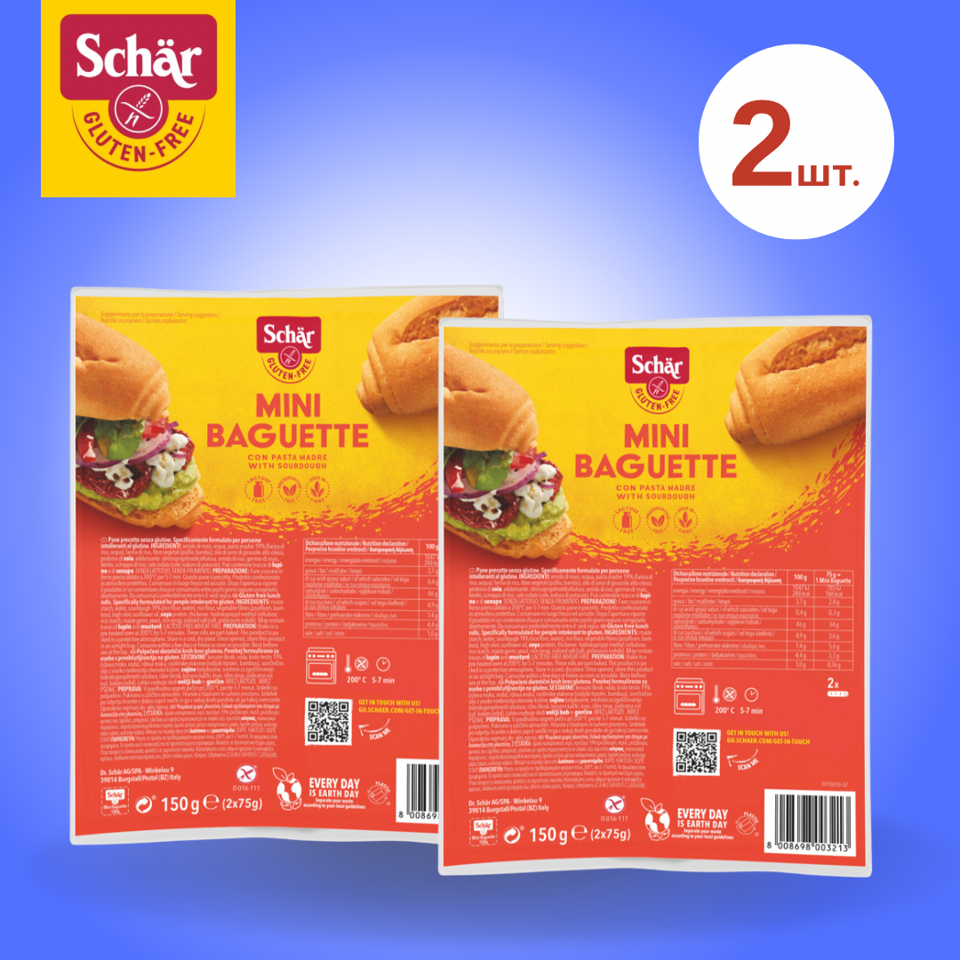 Мини багеты без глютена Mini Baguette, т.м. Dr.Schar, 150 г, 2 уп. по 2 шт. интересное: