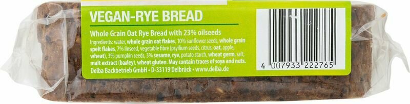 Купить Хлеб Delba цельнозерновой вегетарианский, овсяный с семенами льна, подсолнечника и тыквы, 300 гр.