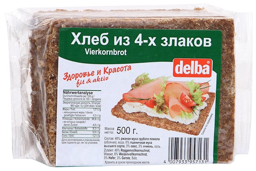 Хлеб Delba из 4-х злаков, 500 гр. интересное: