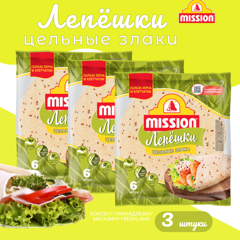 Купить Лепешки пшеничные Mission Цельные злаки, 20 см, 6 шт, 250 г, 3 уп