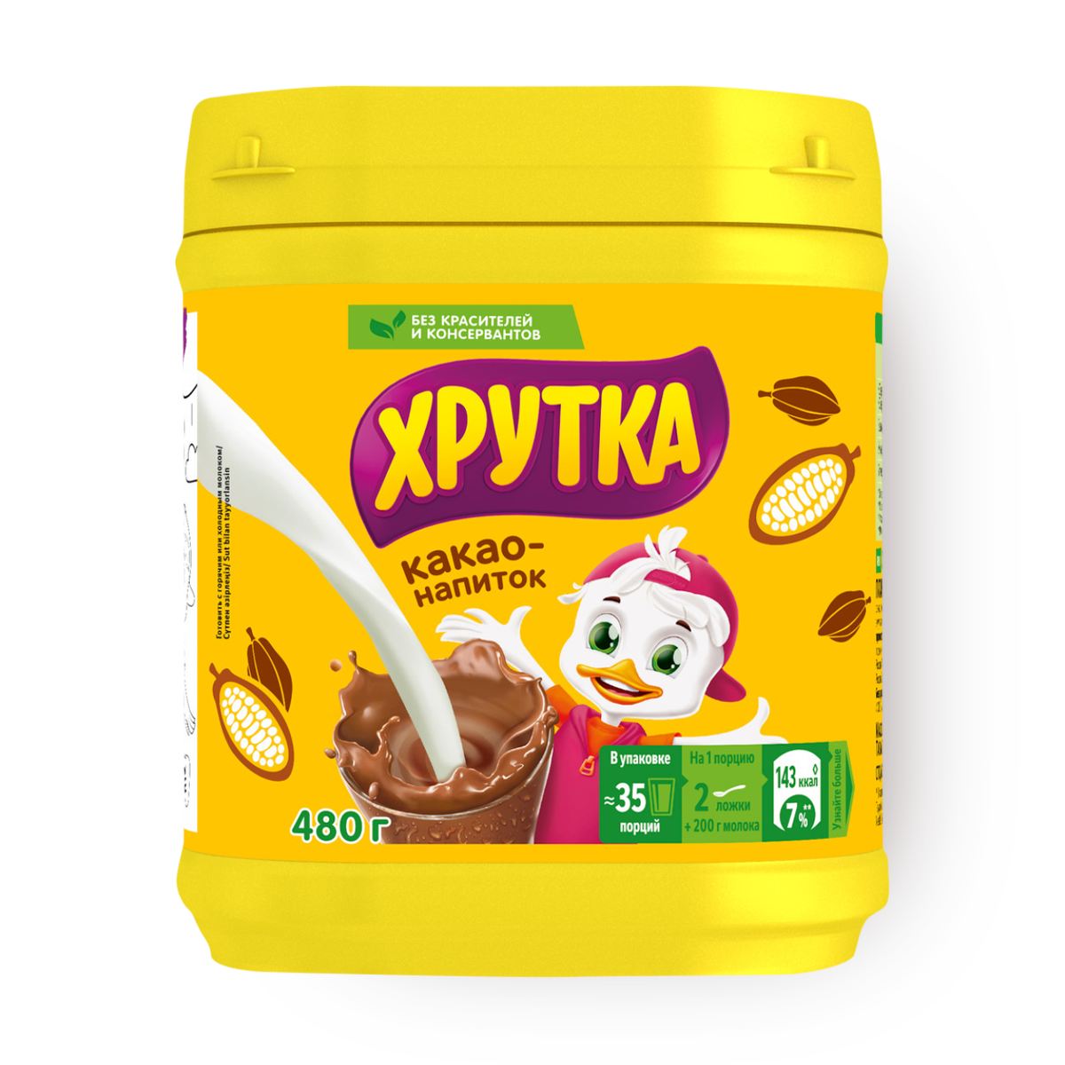 Хрутка Какао-напиток быстрорастворимый для детей дошкольного и школьного возраста, банка 480г