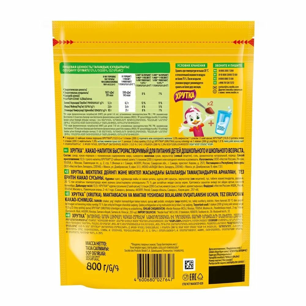 Хрутка Какао-напиток быстрорастворимый для детского питания 800г