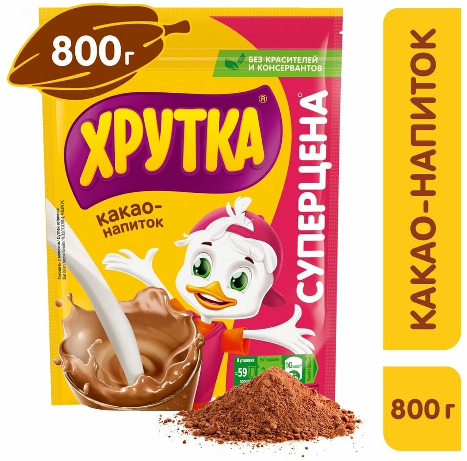 Хрутка Какао-напиток быстрорастворимый для детского питания 800г