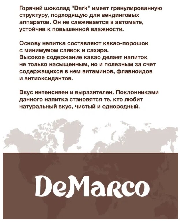 Горячий шоколад DeMarco, растворимый, молочный, сливочный, гранулированный, растворимый какао напиток, 1 кг интересное:
