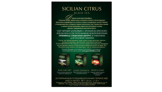 Чай Greenfield черный Sicilian Citrus, 20шт/1уп 1158-08 интересное: