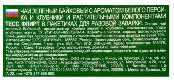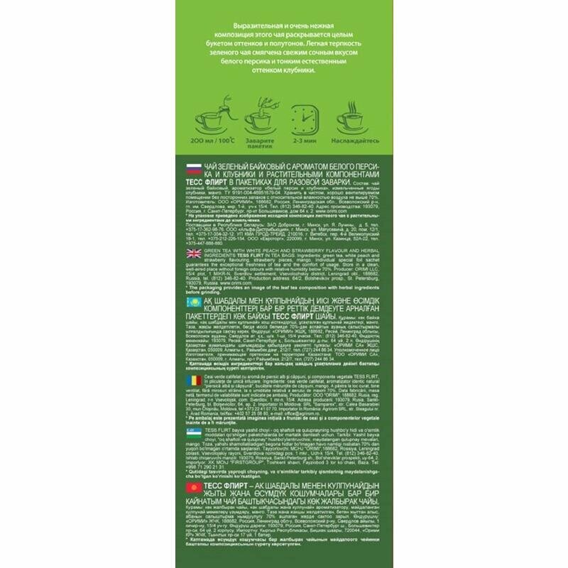 Чай в пакетиках зеленый Tess Flirt с клубникой и ароматом белого персика, 100 шт