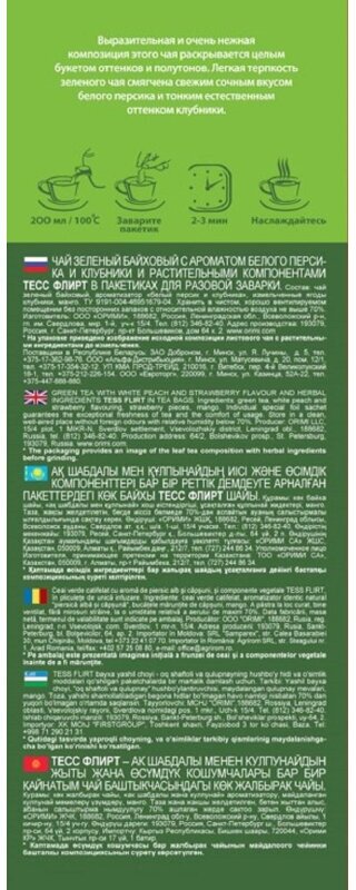 Tess Чай зеленый Flirt, клубника и белый персик, 25 пакетиков по 1,5 г
