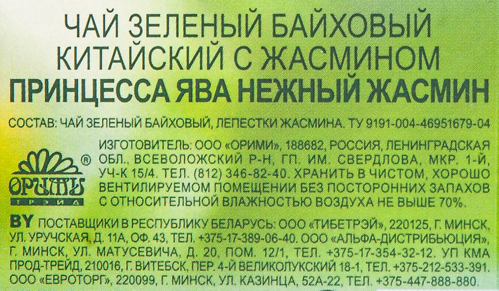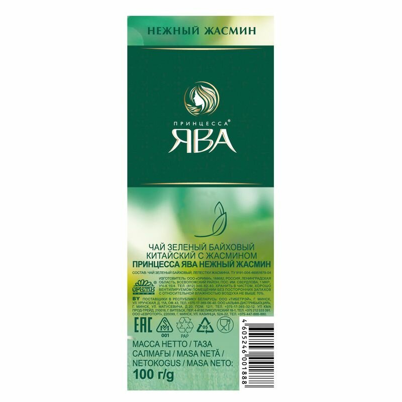 Чай зеленый листовой Принцесса Ява Нежный жасмин, 100 г 6001888 интересное:
