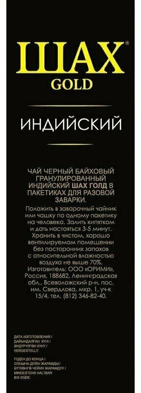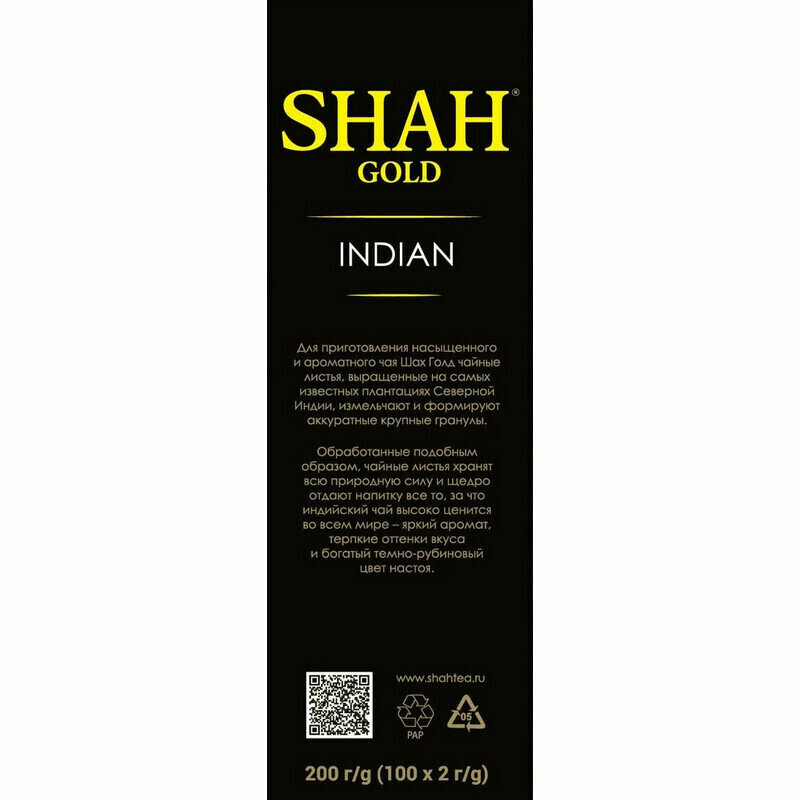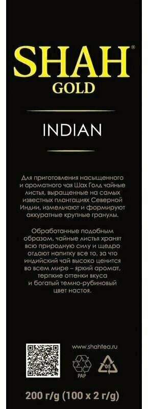 Шах Gold Индийский Чай черный в пакетиках 100 шт интересное: