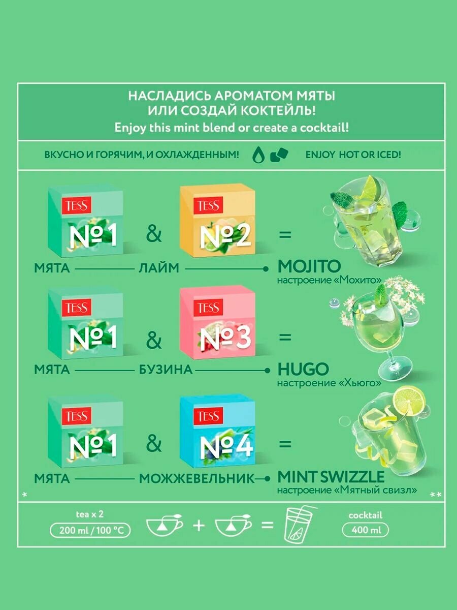 Тесс Коктейль Бокс№1 Мята (1,5гх20п) чай нап.с аром.пирам. интересное: