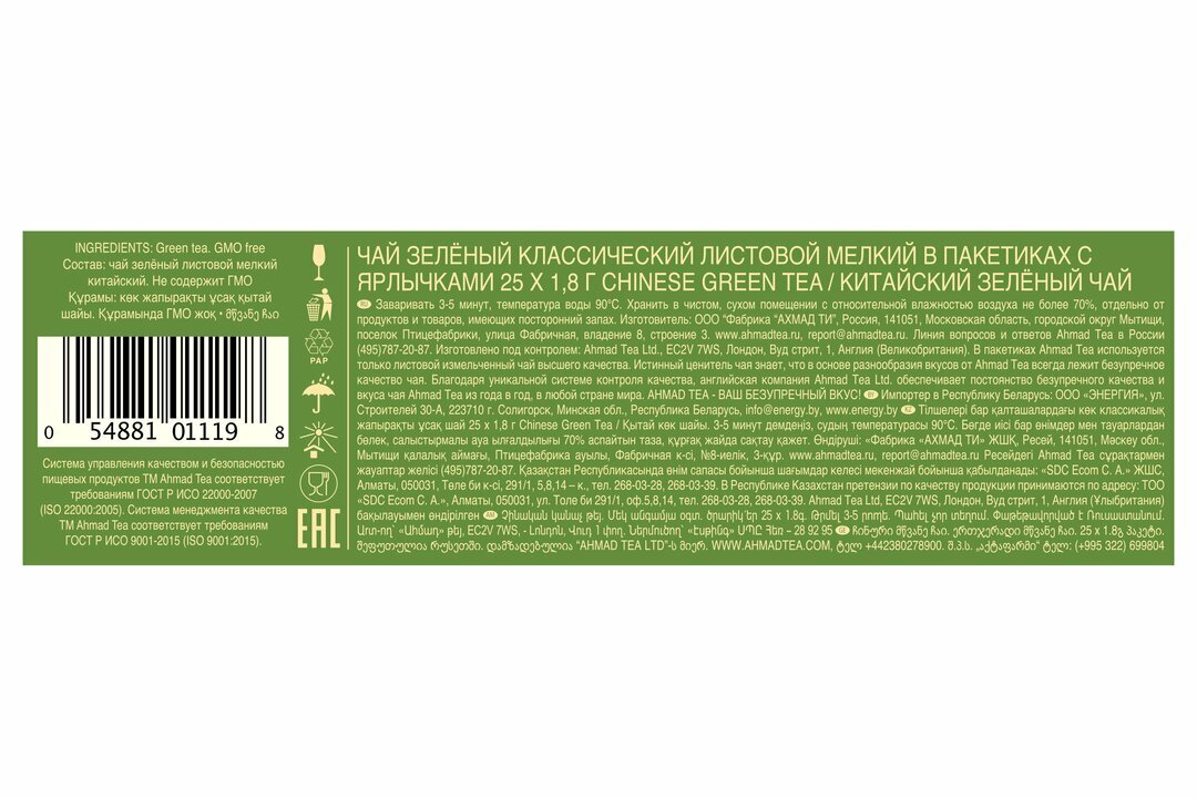 Ahmad Tea Чай Китайский, зеленый, 25 пак х 1,8 гр