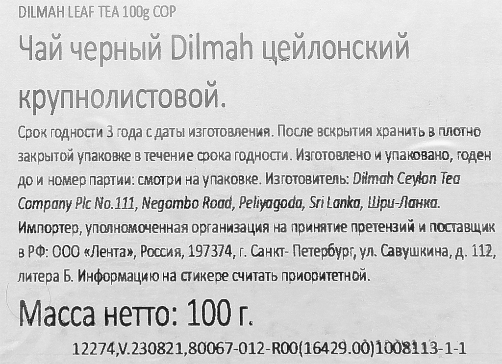 | Страна произрастания | Россия / Шри-Ланка |