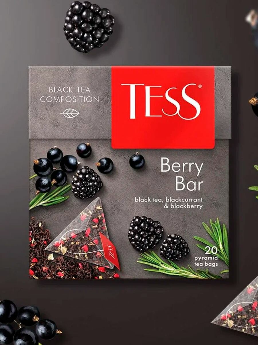 Tess Чай черный Berry Bar, 20 пирамидок по 1,8 г интересное: