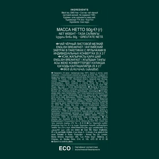 Чай черный Ahmad Tea English Breakfast, в пакетиках, 2 г × 25 шт. интересное: