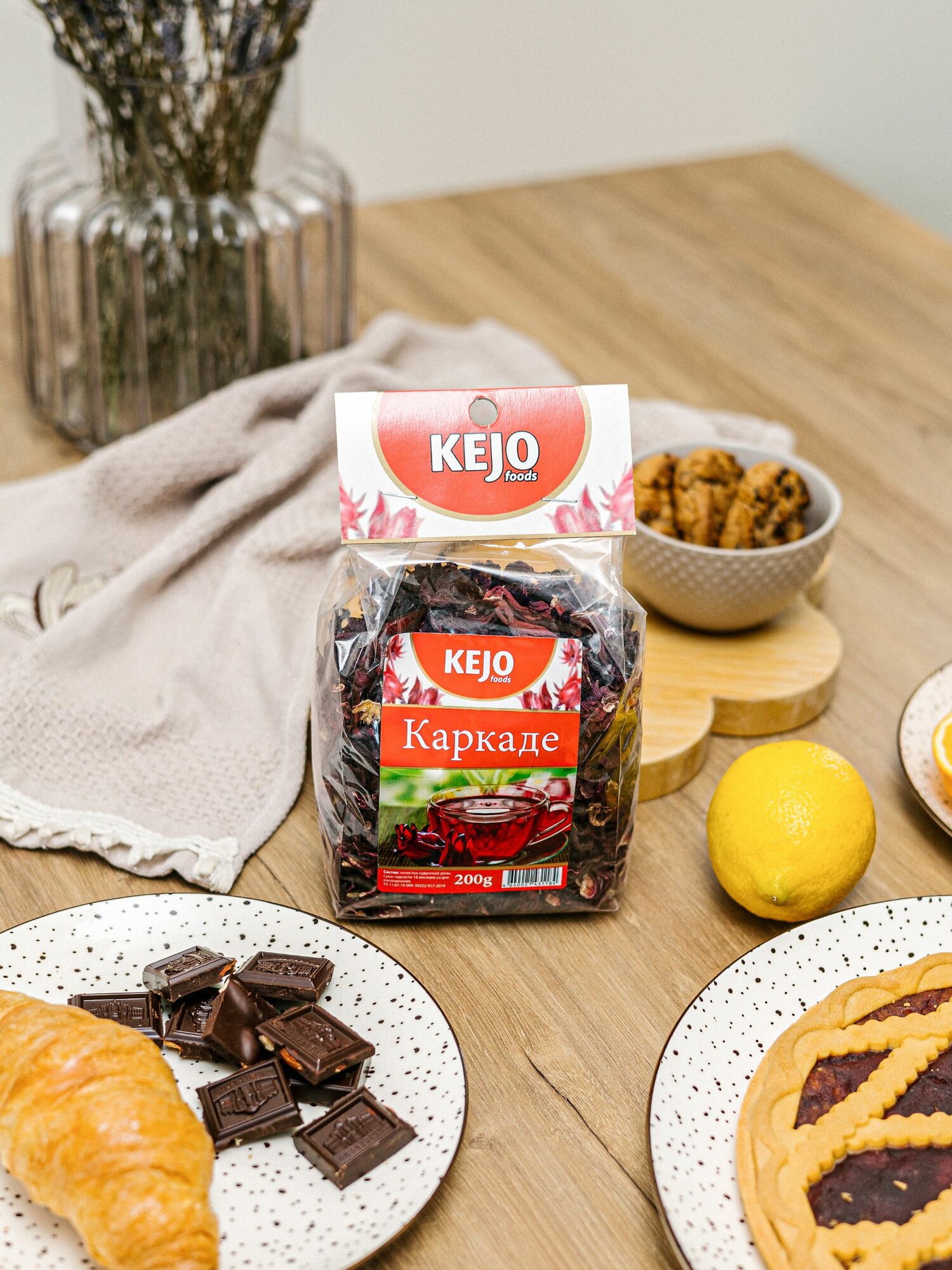 Каркаде,чай каркаде,листовой,красный чай,чай из лепестков суданской розы,Kejofoods, 200г.