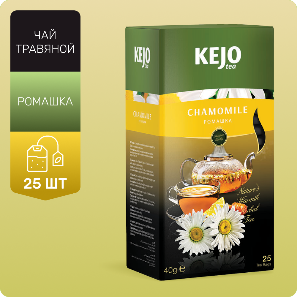Купить Чай травяной KEJOfoods CHAMOMILE, с ромашкой в пакетиках 25*1,6гр картон
