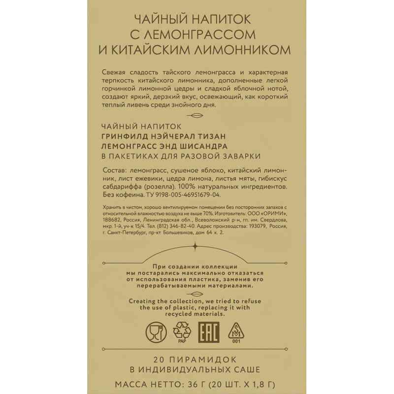 Напиток чайный GREENFIELD Нейчерал Тизан Лемонграсс энд Шисандра, 20пак интересное: