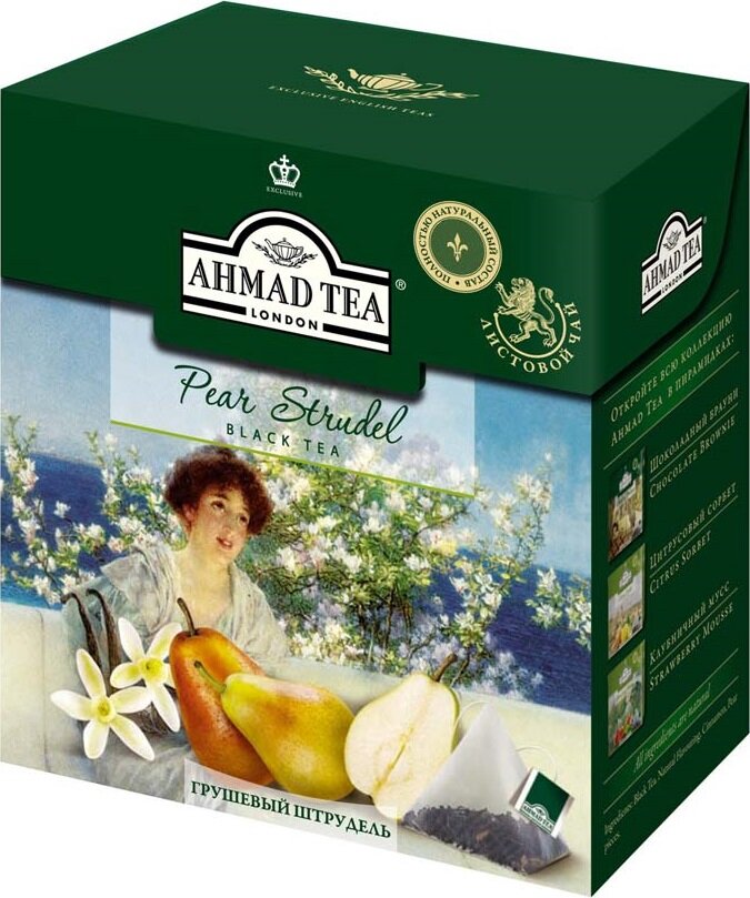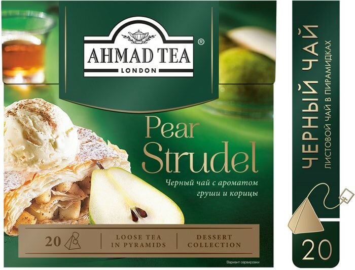 Чай "Ahmad Tea" Грушевый штрудель, черный, листовой, пирамидки, 20х1,8г интересное: